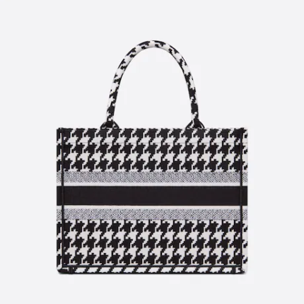 MEDIUM DIOR BOOK TOTE Black Macro Houndstooth Embroidery (36 x 27.5 x 16.5 cm)
