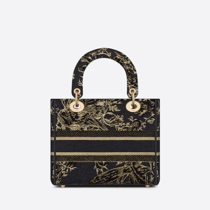 MEDIUM LADY D-LITE BAG Black Multicolor Dior Jardin d’Hiver Embroidered Cotton with Velvet and Metallic Thread