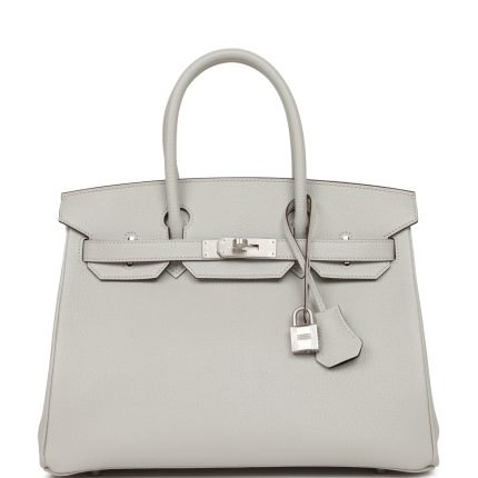 This Special Order Birkin is in Gris Perle chevre leather with brushed palladium hardware and has tonal stitching.front flap. two straps with center toggle closure. clochette with