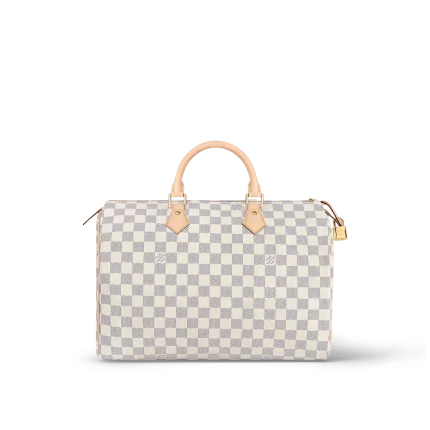 Crafted from feminine Damier Azur canvas the Speedy 35 is a stylish handbag for both travel and daily use. Launched