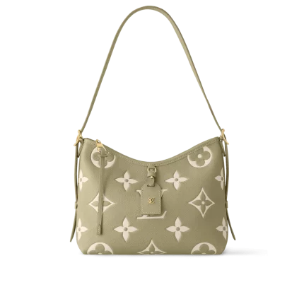 The Carryall PM bag is fashioned from Monogram Empreinte leather in a pastel colorway which brings out the bag’s casual-chic