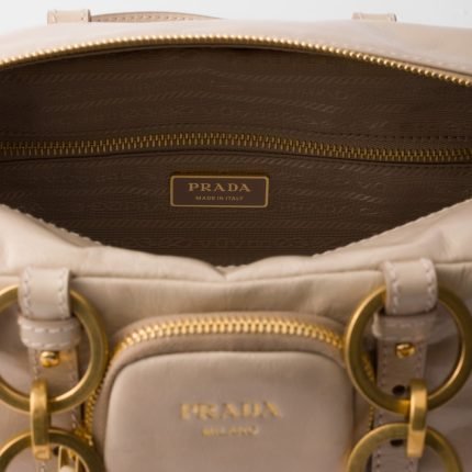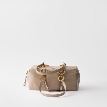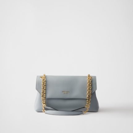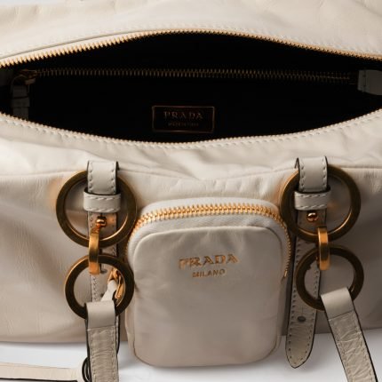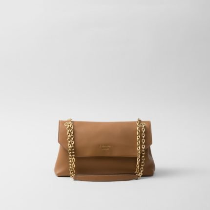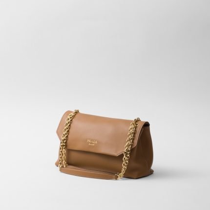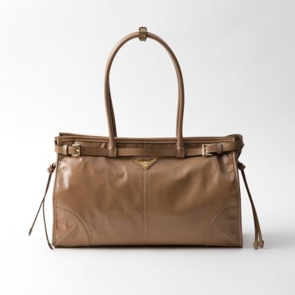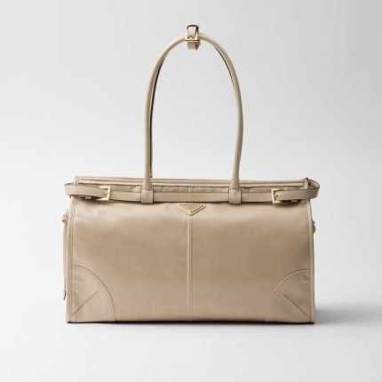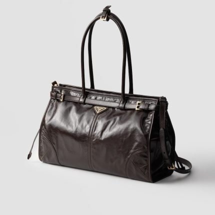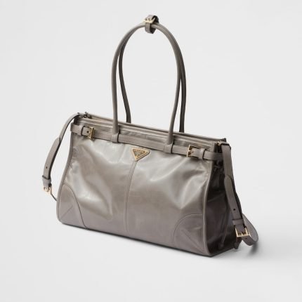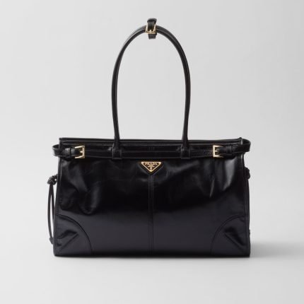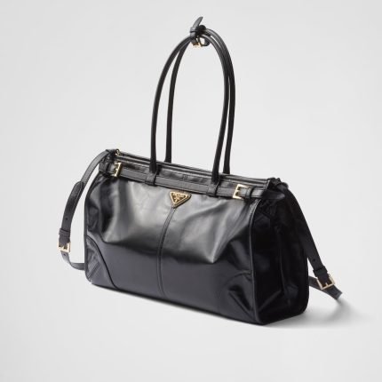 This pragmatic and refined handbag is made of soft leather with a glossy finish that emphasizes its versatile, modern allure.