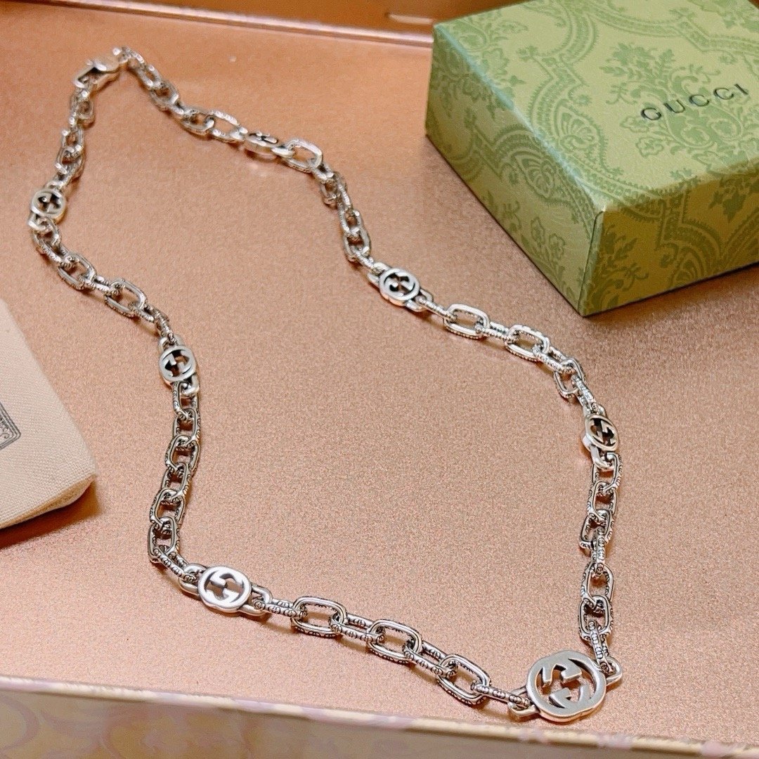 Featuring Gucci’s exclusive **7G motif**, this instantly recognizable necklace bridges **luxury heritage** with **contemporary cool**. The adjustable 60cm chain adapts to your mood – wear it loose for downtown edge or shortened for uptown elegance.