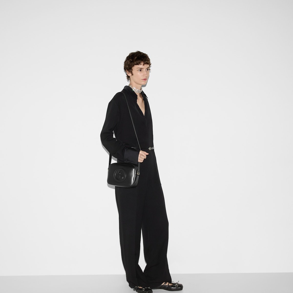 The new Gucci Blondie bag, whose distinctive logo first appeared in the House’s collections in the early 1970s, weaves together past and present in a fusion of nostalgia and modernity. This mini shoulder bag is crafted from black smooth leather, and can be worn crossbody with an adjustable leather strap.