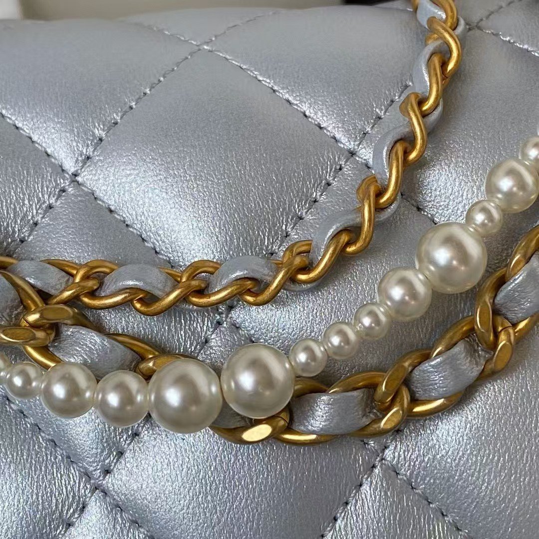 Be the first to review “Chanel AS4385 Mini Flap Bag Pearl Lambskin Faux Pearl & Gold Metal Grey” Cancel reply