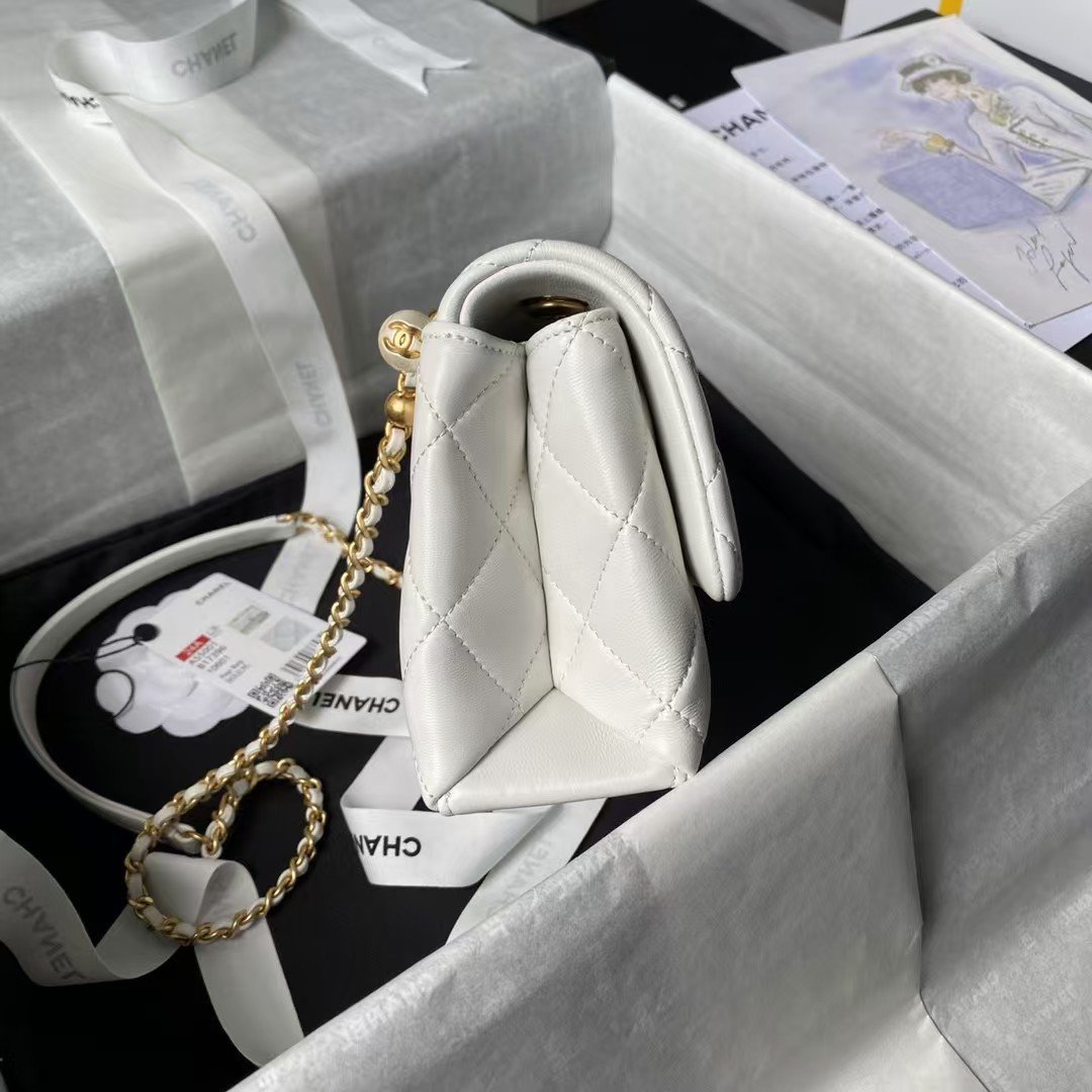 Be the first to review “Chanel AS5001 Mini Flap Bag Top Handle Shiny Lambskin Imitation Pearl & Gold Metal White” Cancel reply