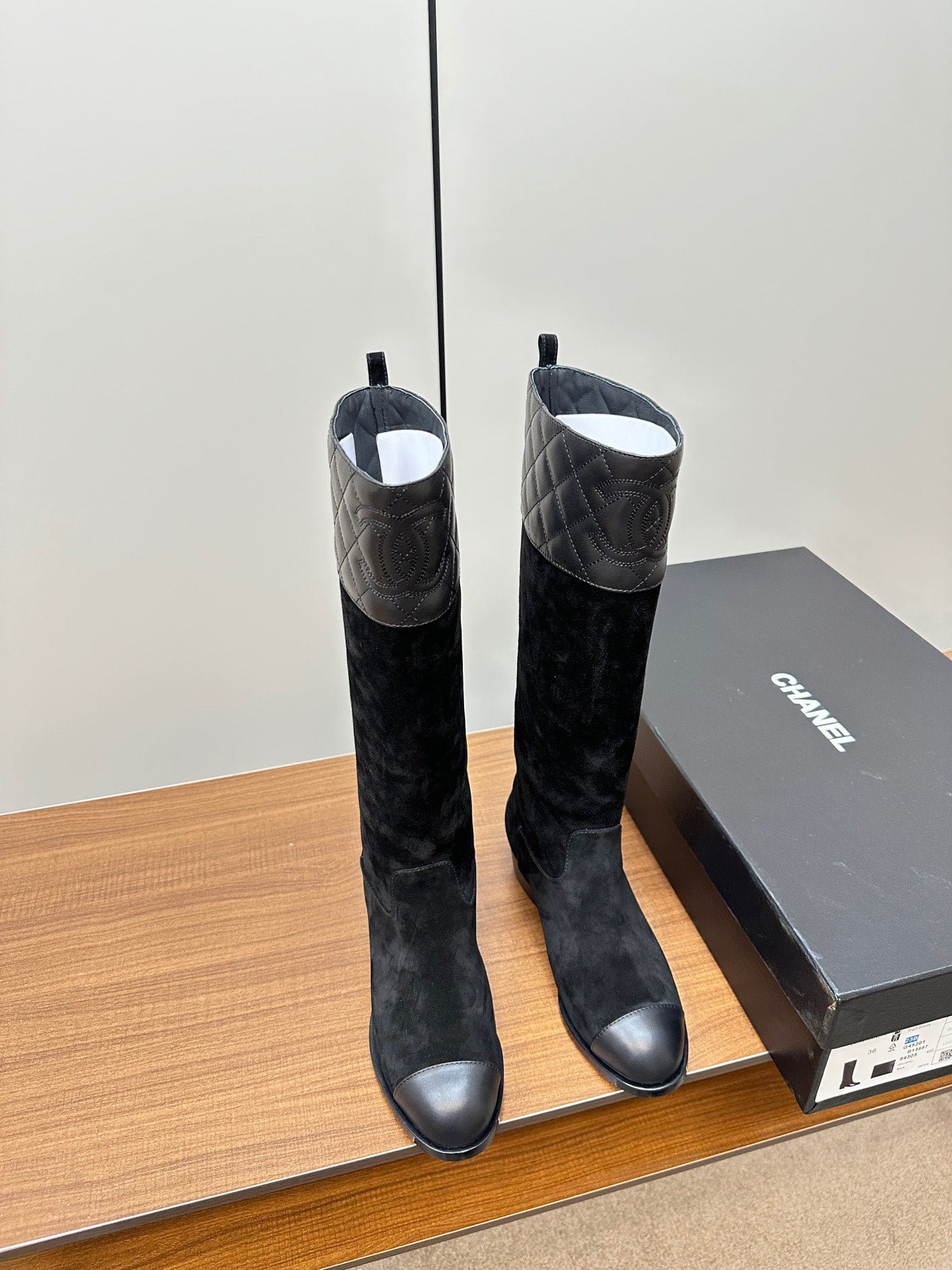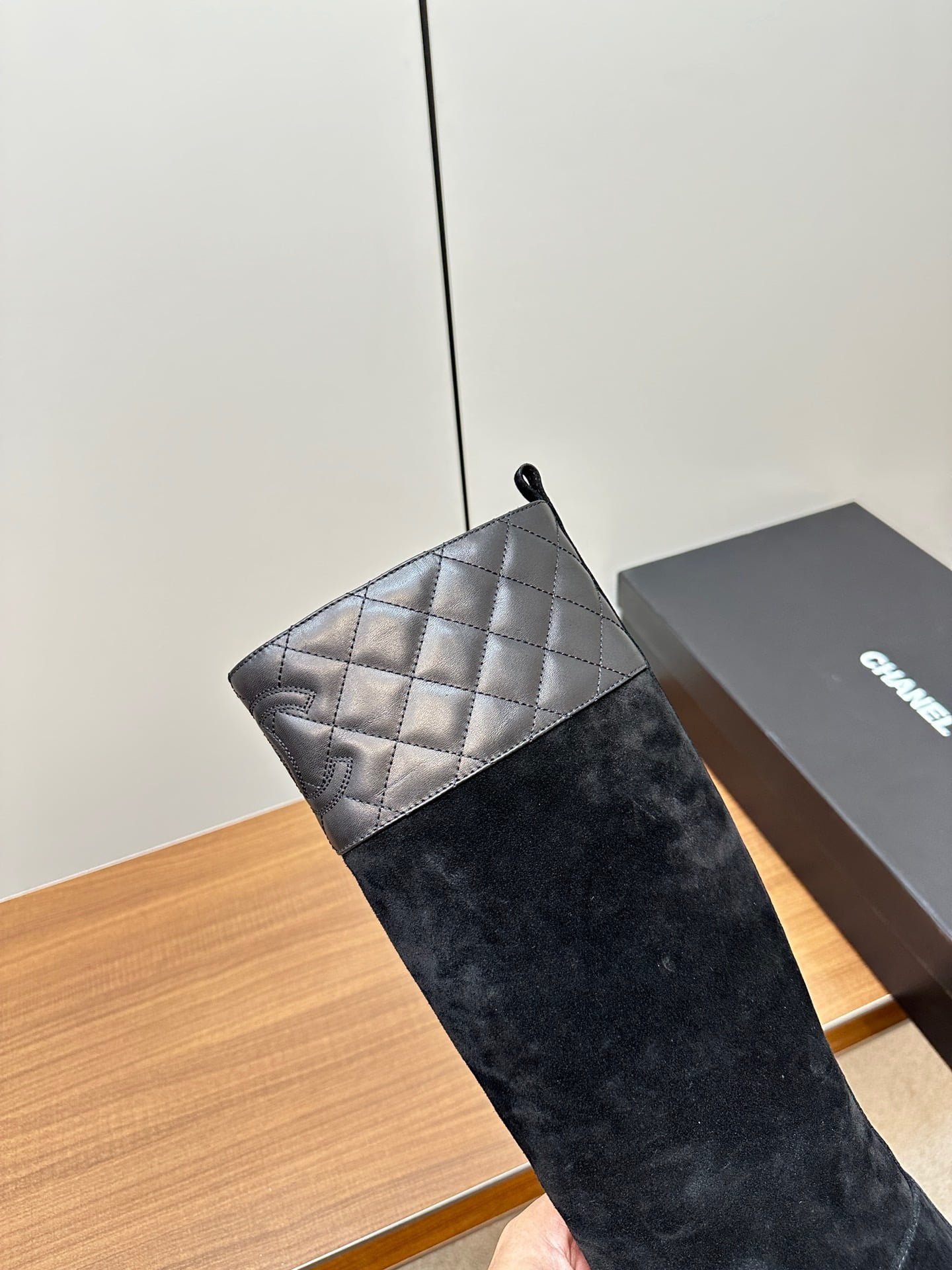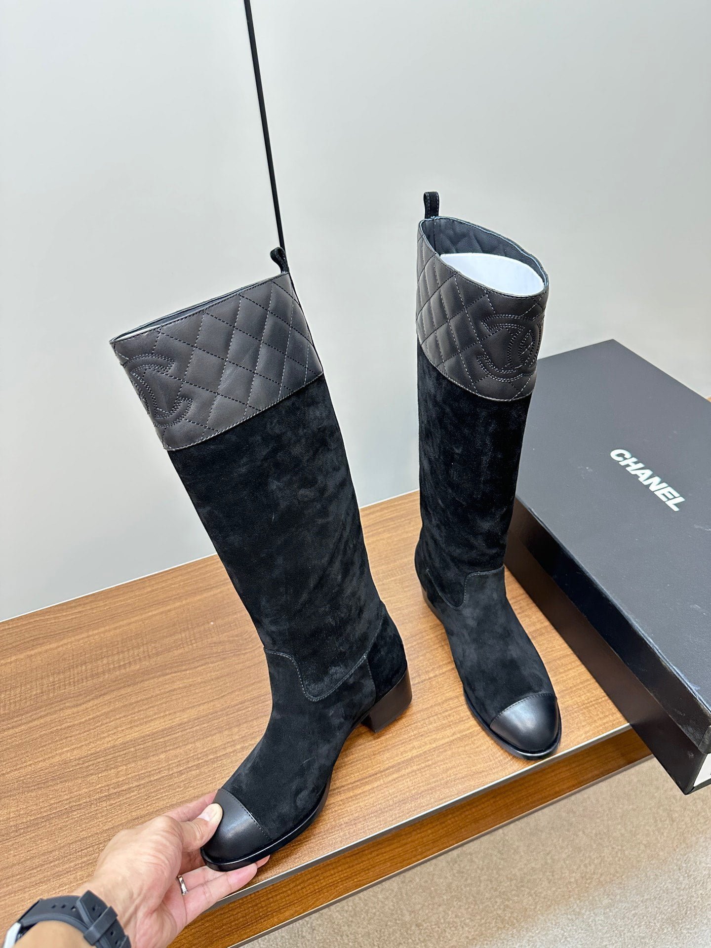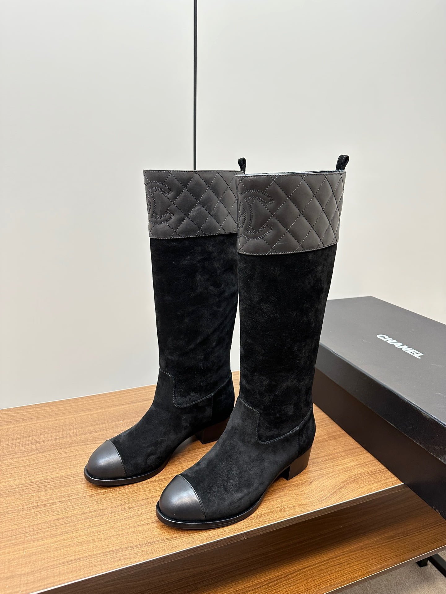This knight boots is really a representative of handsome fashion. boot collar design classic diamond lattice craft shoe cylinder double C electric embroidered logo low-key luxury! Simple fashion personality and atmosphere! Natural and smooth beauty. a kind of amazing time beauty. winter also want to show long legs ~