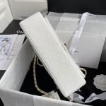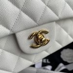 This medium classic double flap bag is crafted in white caviar leather with gold hardware, featuring the signature CC turnlock closure on the front flap, half-moon back pocket, adjustable interwoven gold chain and white leather shoulder strap.
