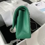 This medium classic double flap bag is crafted in green lambskin leather with silver hardware, featuring the signature CC turnlock closure on the front flap, half-moon back pocket, adjustable interwoven silver chain and green leather shoulder strap.