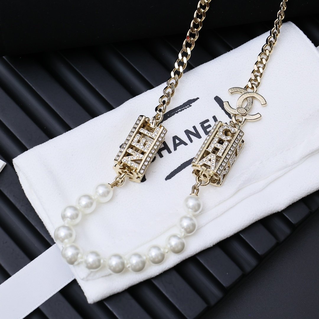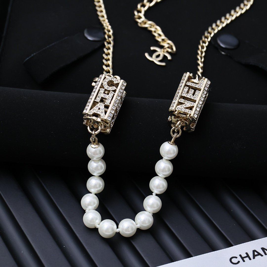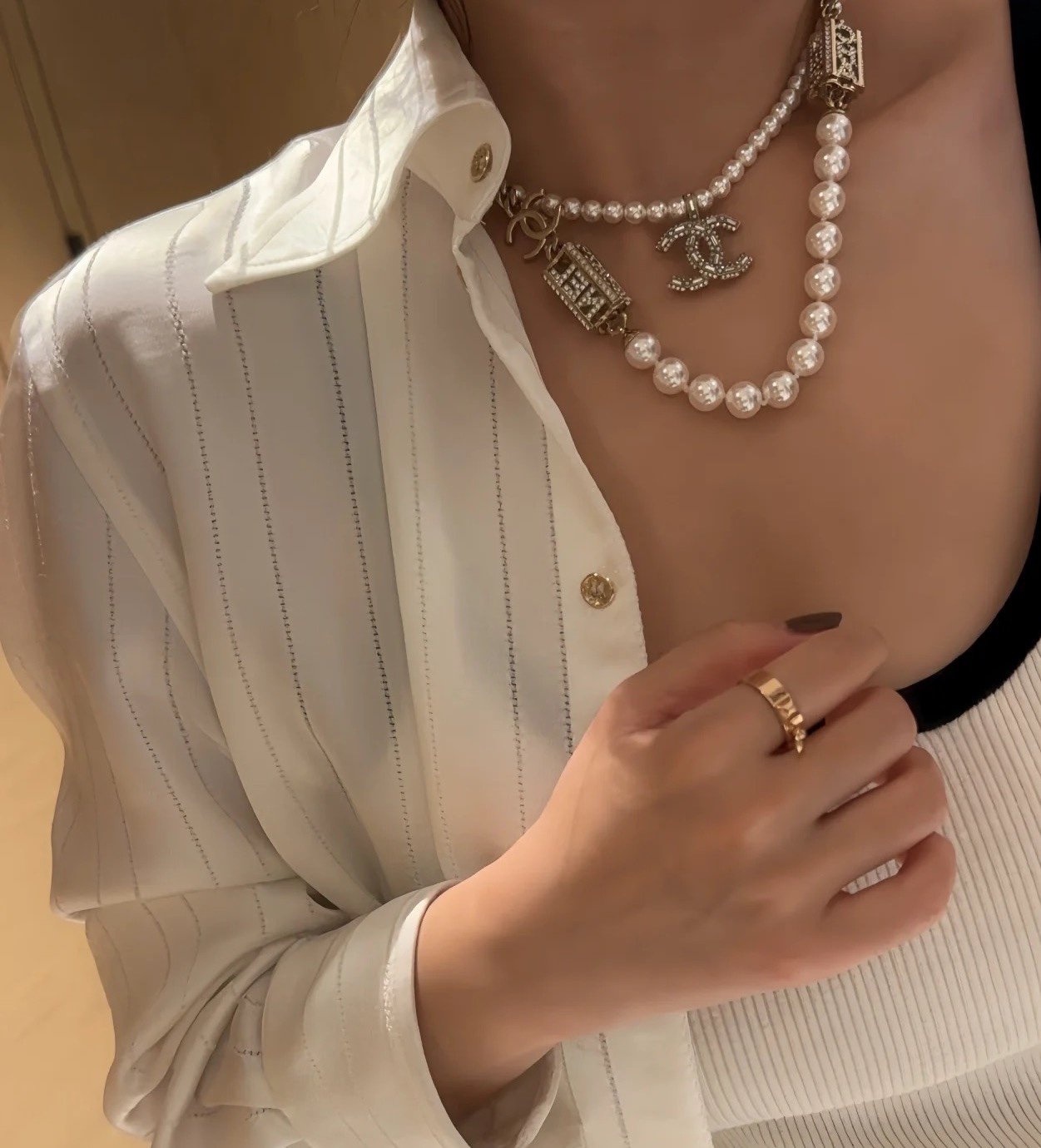 **Where modern edge meets timeless pearls** – this **Chanel openwork letter necklace** redefines everyday elegance. The **artful fusion of镂空字母吊坠 and lustrous pearls** creates a **playfully chic** look that’s **perfectly balanced** – striking enough to turn heads, yet understated enough for daily wear.