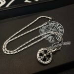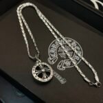 **Iconic Round Cross Pendant** – A signature Chrome Hearts design, the circular cross blends edgy symbolism with sleek craftsmanship, making it a timeless statement piece for any style.