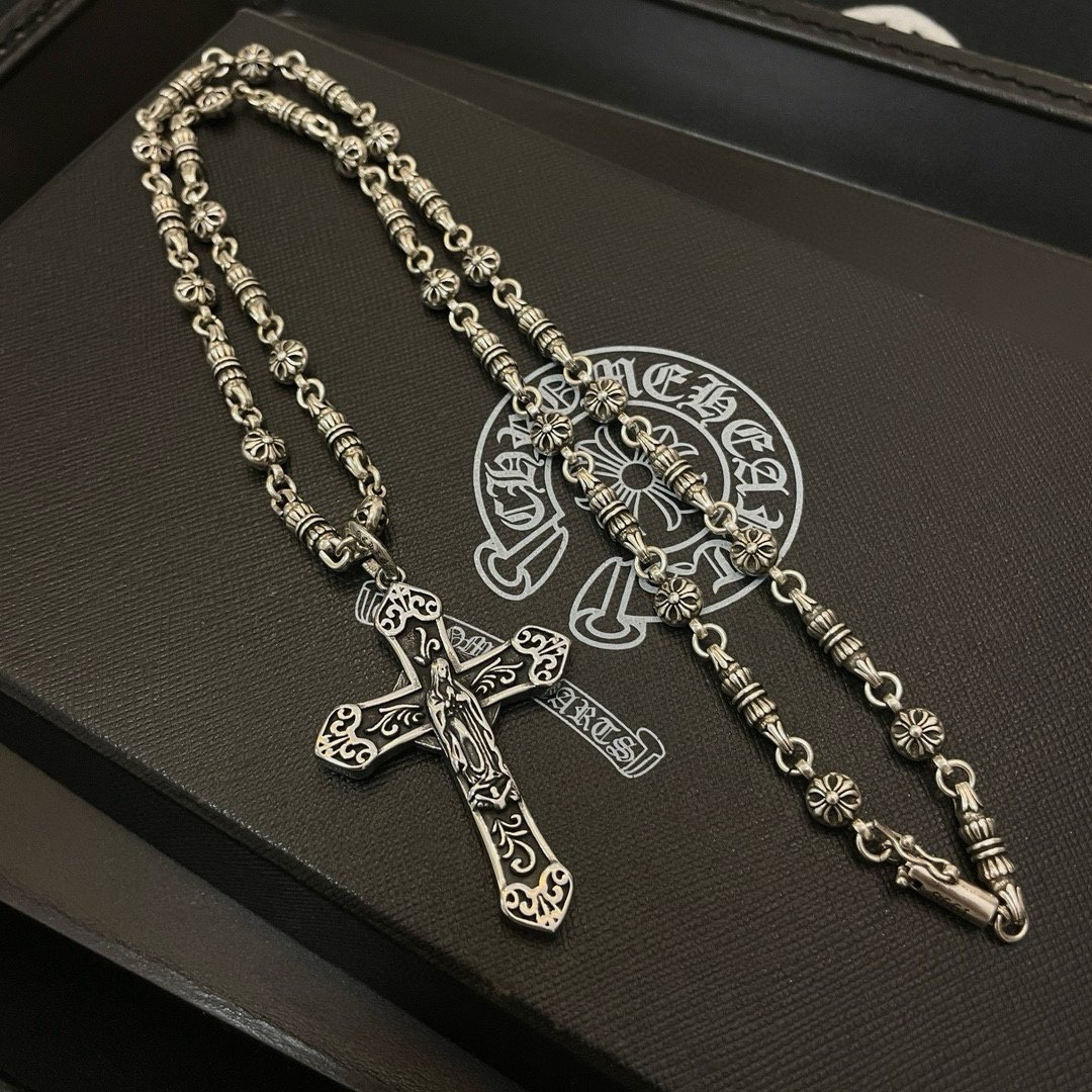Chrome Hearts Classic Vintage Multi-Element Floral Cross Orb Pendant Necklace