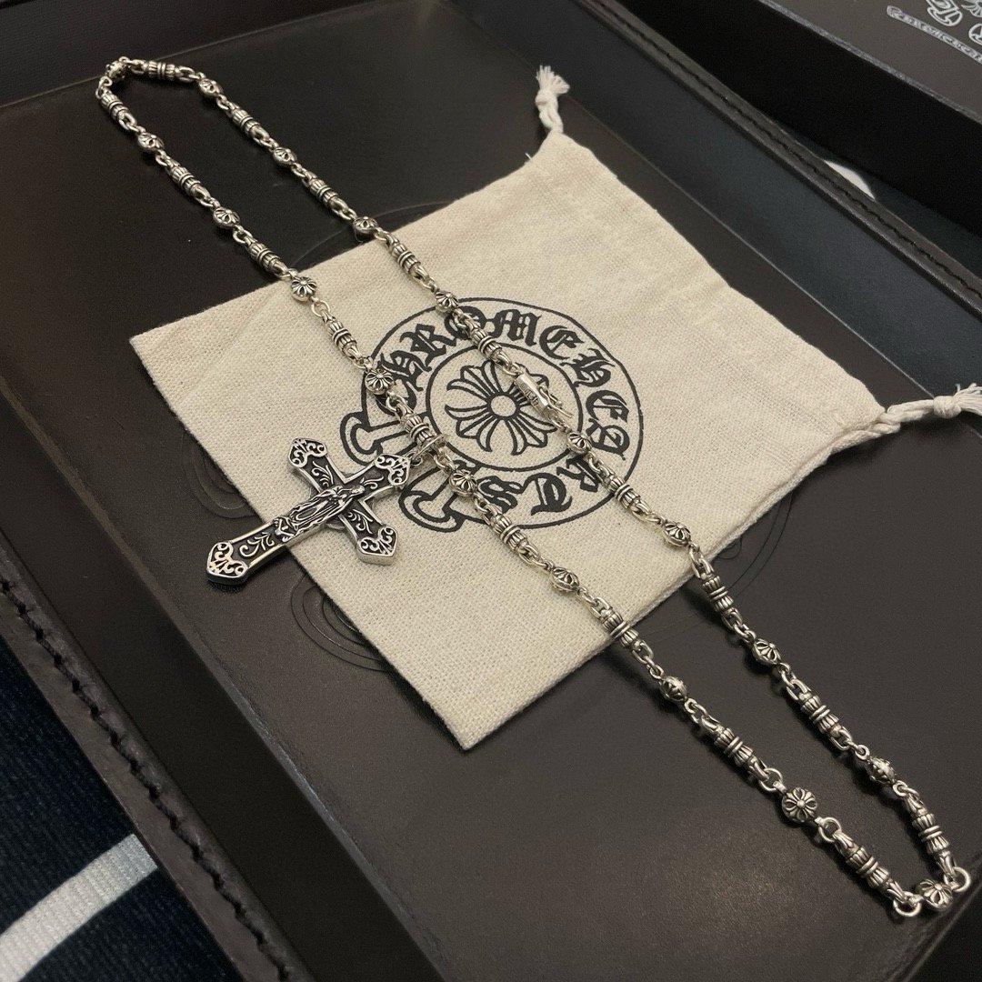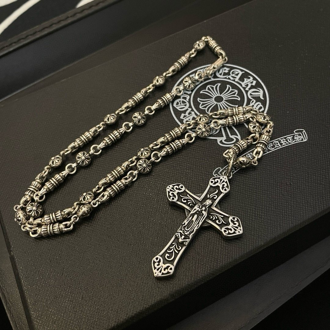 Unveil the Icon: Command attention with the unmistakable Chrome Hearts Floral Cross Orb Pendant. This isn’t just a cross; it’s a multi-dimensional masterpiece. Featuring an intricately sculpted orb base, it showcases deeply etched, varied floral and geometric patterns across its uneven, textured surface. This unique interplay of raised and recessed elements creates captivating light and shadow, resulting in a truly distinctive, unconventional statement piece unlike any other.