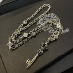 **Chrome Hearts Classic Retro Multi-Element Dice Necklace – Crown & Key Pendant**