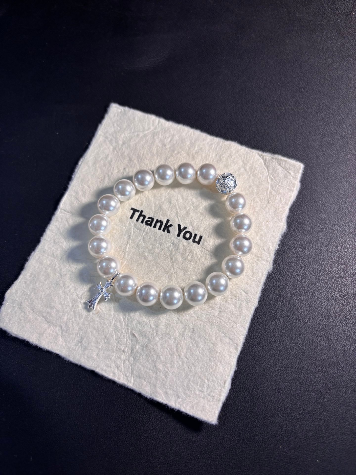 **Chrome Hearts Pearl Cross Bracelet – Sacred Edge Redefined**