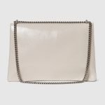Gucci presents a maxi version of the signature Dionysus shoulder bag. Designed with a more contemporary look, this iteration in sleek light grey patent leather features a tiger head closure with a flap and a sliding chain that can be adjusted to wear with the preferred length and style.