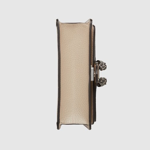 Colors tell a story throughout Gucci Love Parade. One of the House’s most emblematic materials, the GG Supreme is inspired by an archival design from the ’30s. Traditionally presented in beige and ebony, the canvas is presented in a beige and white combination as an ode to timeless pieces and everlasting design. Here, the pattern defines the Dionysus mini bag.