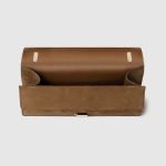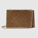 Gucci presents a small version of the signature Dionysus shoulder bag. Crafted from brown GG suede, this iteration features a tiger head closure with a flap and a sliding chain that can be adjusted to wear with the preferred length and style.