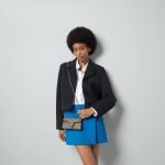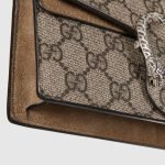A structured GG Supreme canvas chain super mini shoulder bag with a key ring that can be used to attach this bag to a separate larger bag. The closure has the textured tiger head spur closure-a unique detail referencing the Greek god Dionysus, who in myth is said to have crossed the river Tigris on a tiger sent to him by Zeus. The accessory can also be worn as a crossbody bag.