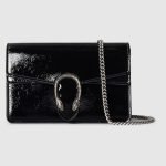A shiny patent leather brings a fresh take to the Dionysus’ well-structured design, while creating contrast with the signature tiger head hardware in a silver tone. A suede leather lining completes the style with an elegant finish.