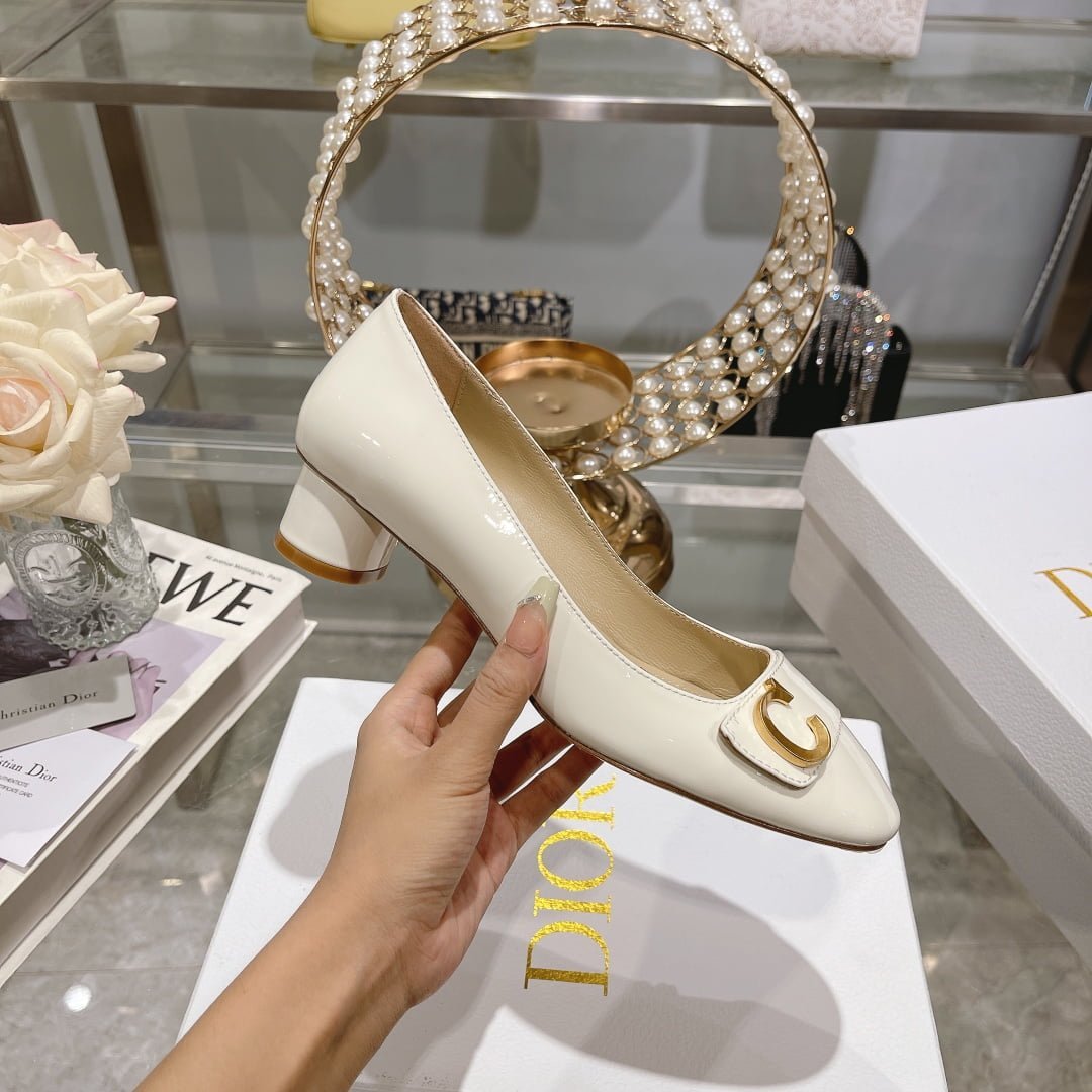 Dior 2023 new C ‘EST thick heel square head women-s single shoes white size:34-40 note shoes size when you fill shipping address