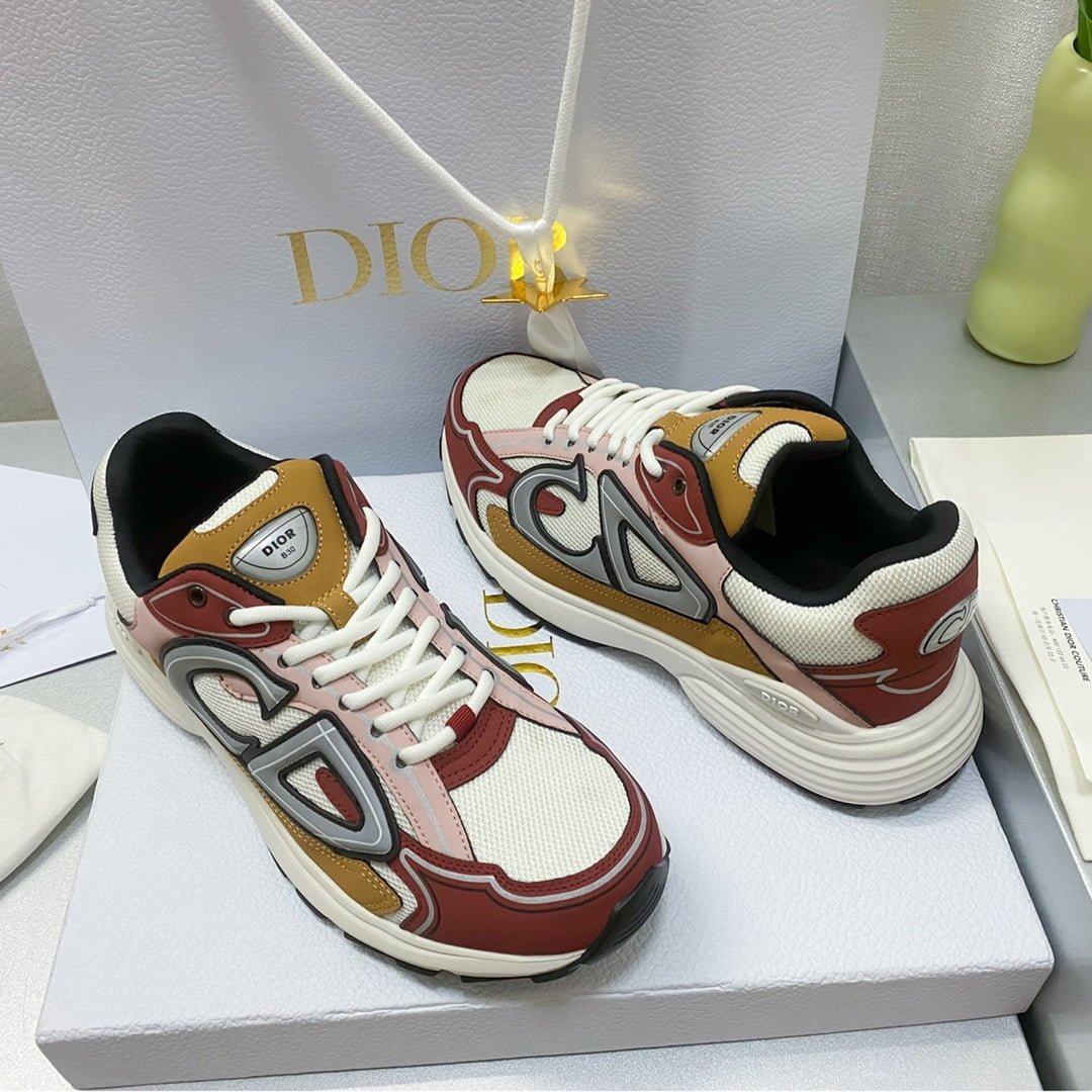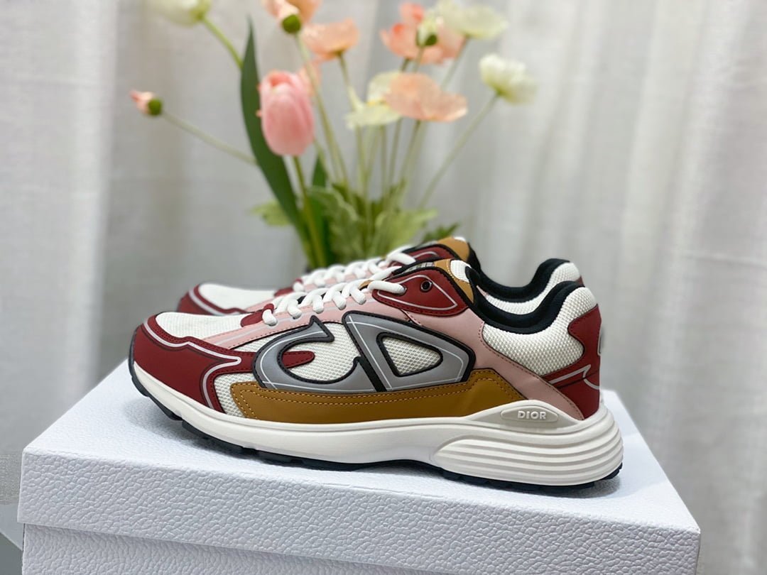 The new B30 sneakers conform to the trend of the retro market Dad Shoes style shoes The Dior logo on the tongue also indicates that this pair of shoes is B30 model! B30 uses fine texture leather and mesh fabric material to splicate into the shoe body. the shoe body on both sides of the prominent letter CD to indicate identity. the shoe body many lines outline details make the shoe look not so monotonous. vintage flavor