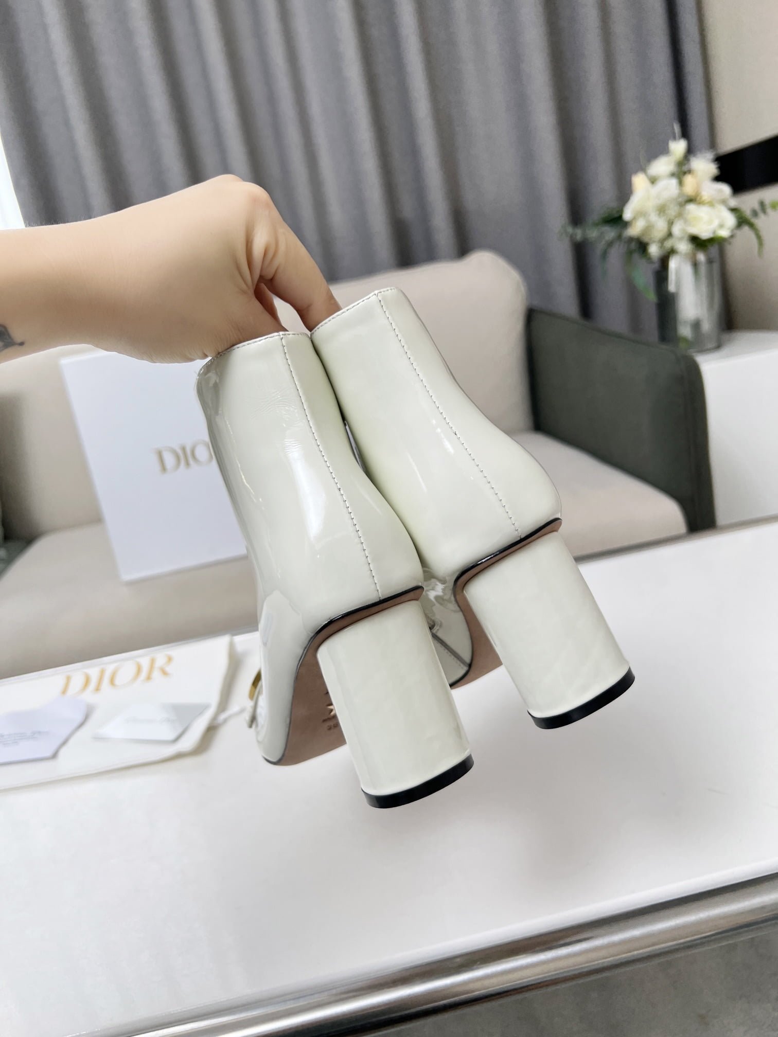 Dior 2023 autumn and winter new nude boots. the outside of the upper whole piece of soft patent leather constantly open. simple atmosphere. 🌹🌹🌹 with brand classic vintage hardware buckle. Patent leather mirror upper with 7.5cm heel height. ultra leg length. Can let you second change no problem temperament goddess 👄💗👄 Yang Jing color later