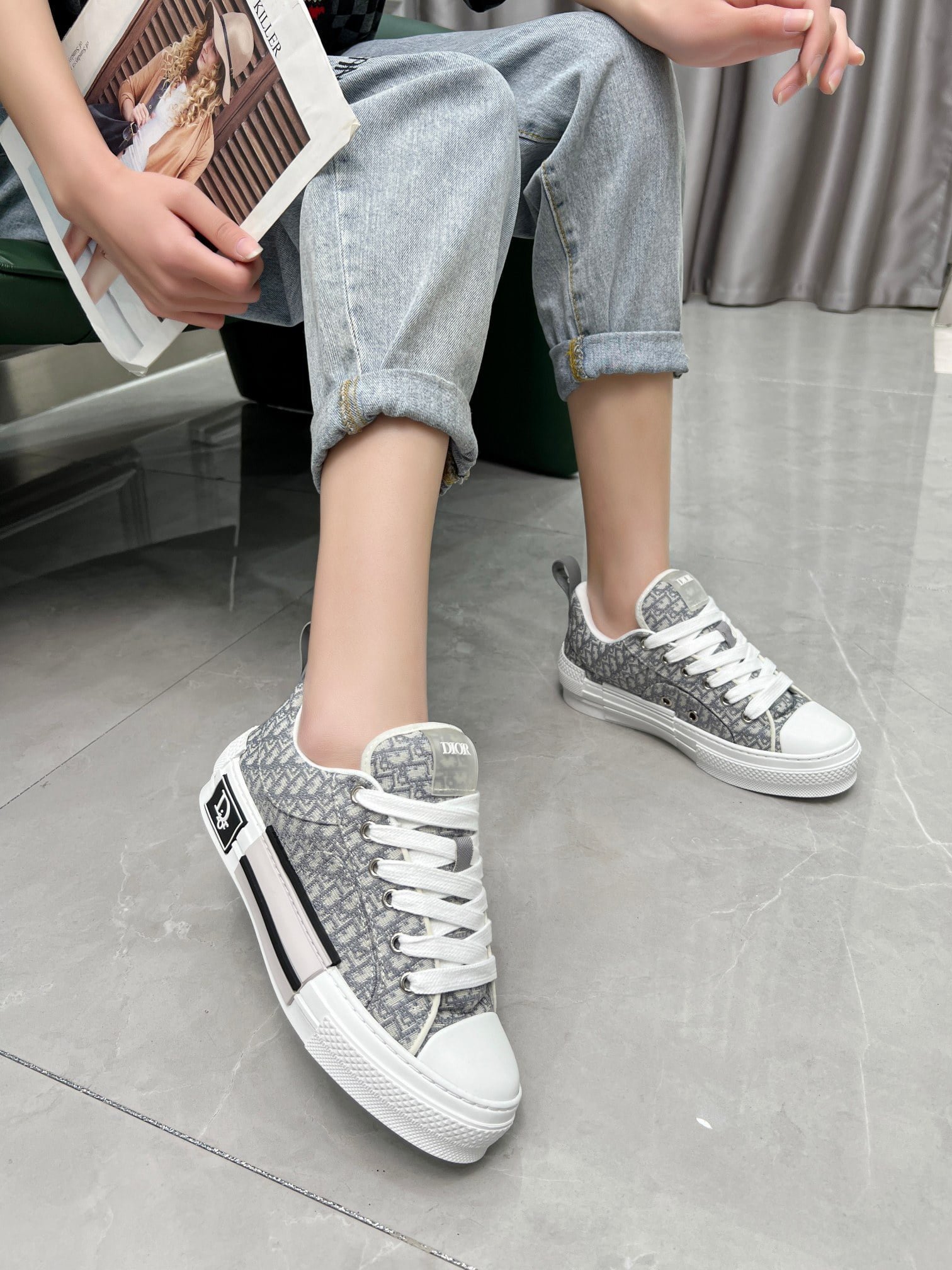 2023 couples spring limited big tongue skateboard sneakers. by Dior Man shoes designer shoes using imported nylon cloth.+ breathable mesh cloth. Color Black Black grey Light grey dark grey khaki. Electric embroidery black. The color of gray khaki is quite personalized. and it also adds the brand in shoelaces and sides. interprets the street atmosphere through fine quality. presents a new trend color and profile ~ embroidery process original 1:1 duplication code 35-41 female 39-45 male
