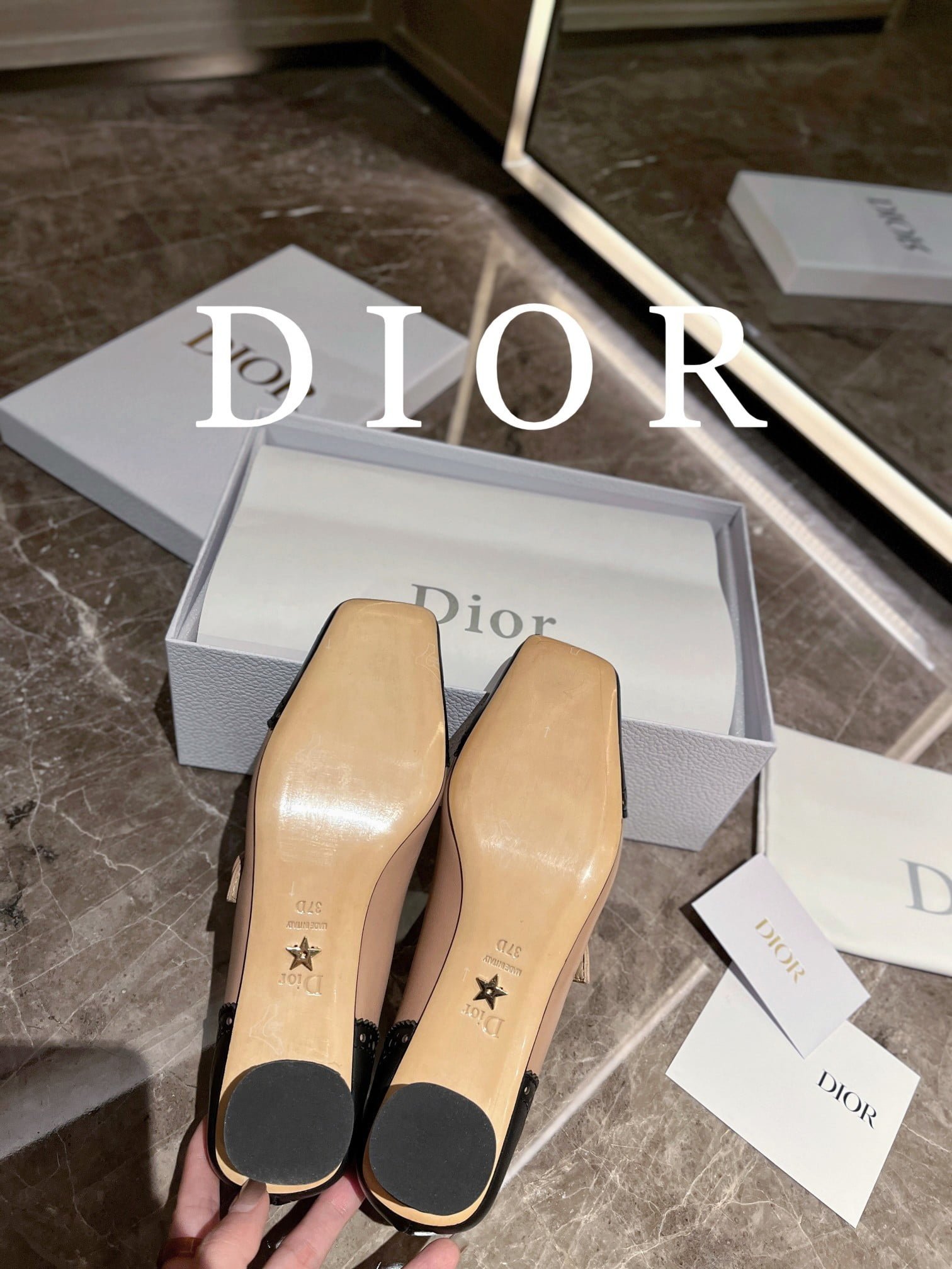 * Leather sole decorated with Chr**tian D**r lucky star symbol