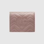 The GG Marmont collection is defined by the emblematic Double G hardware—a contemporary take on a Gucci archival belt buckle from the ’70s that has become a hallmark of the House. The card case wallet is crafted in soft matelassé leather that coordinates with bags of the collection.