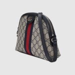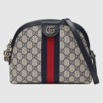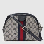 Mirroring the material’s historic origins, GG Supreme is introduced in a timeless mix of blue and beige for Gucci Love Parade. The canvas has come to the front of each collection decade after decade to become a hallmark of the House. Here, the classic palette defines this small Ophidia shoulder bag.