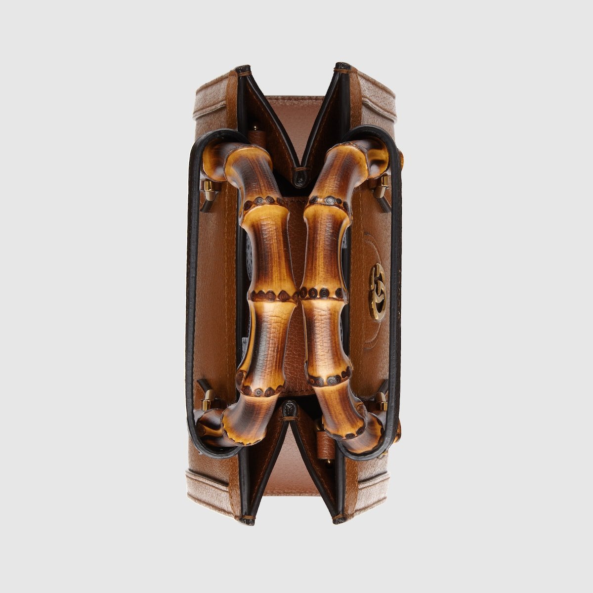 An evolution of a bamboo handle tote first introduced in 1991, the Gucci Diana represents the notion of style in constant evolution and is reimagined with removable, neon leather belts—a nod to the functional bands used to keep the handles in shape. Here, a mini version of the emblematic style is presented in cuir leather.