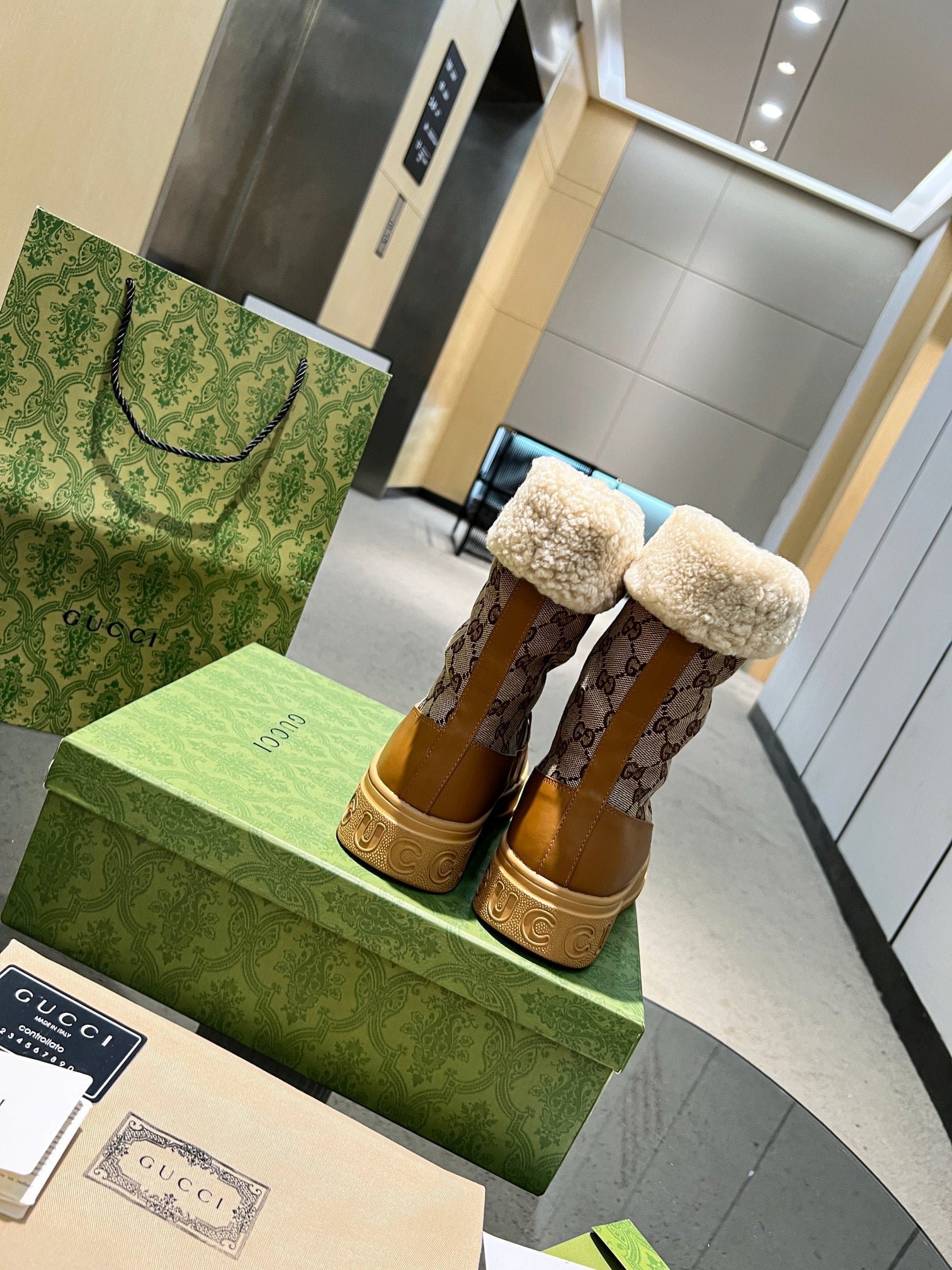 GUCCI top version hairy shoes! The big one is coming! Original one to one! 2023 counter latest model!!! 🔥🔥🔥GUCCi. rubber vacuum ultra-light outsole # high version # Italian counter purchase # original dismantled inverted mold sole # upper using imported cowhide + down cloth/special custom surface. the original consistent import. the interior imported lamb wool. Yardage: 35-41 (The factory has this series of pages).