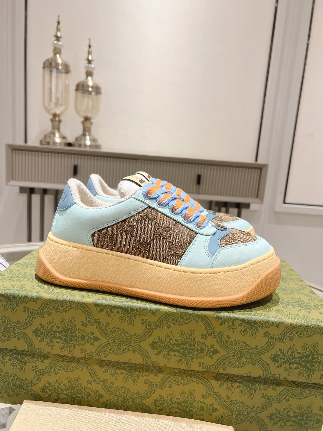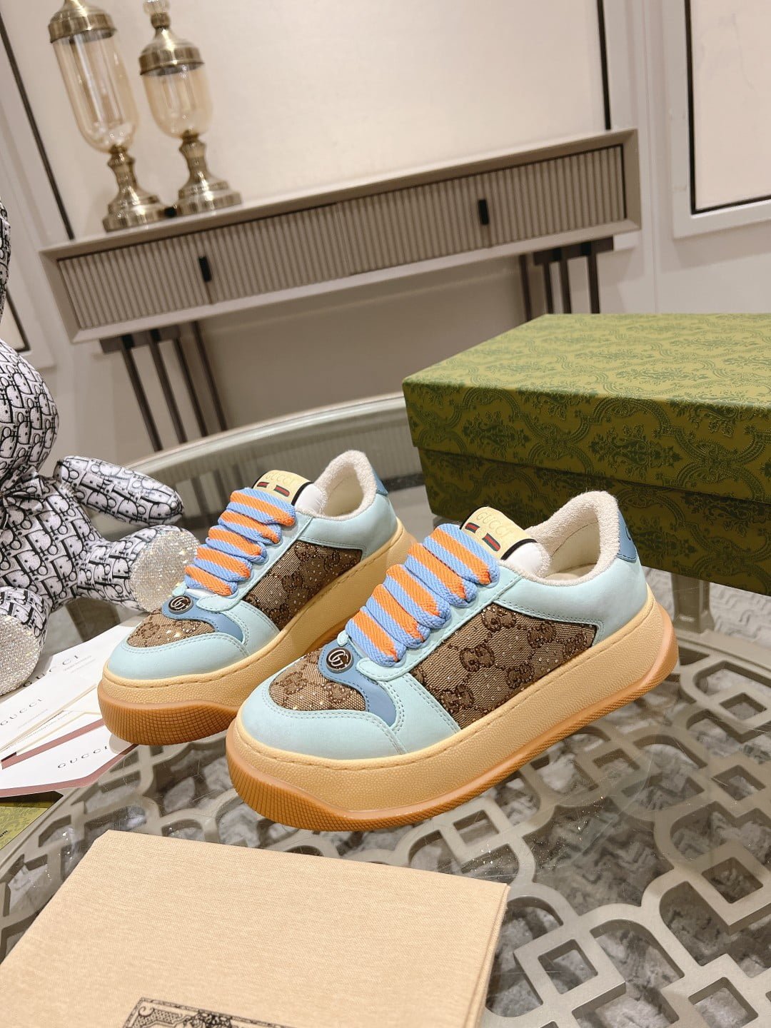 GUCCI new 6 cm tall dirty shoes. ❤️ top version chip upgrade version 2023 super fat GG screener series sports small dirty shoes: lovers 👫1:1 perfect version material. TPU outsole. cowhide feet. stamping. full package: female 35-40 male 38-45