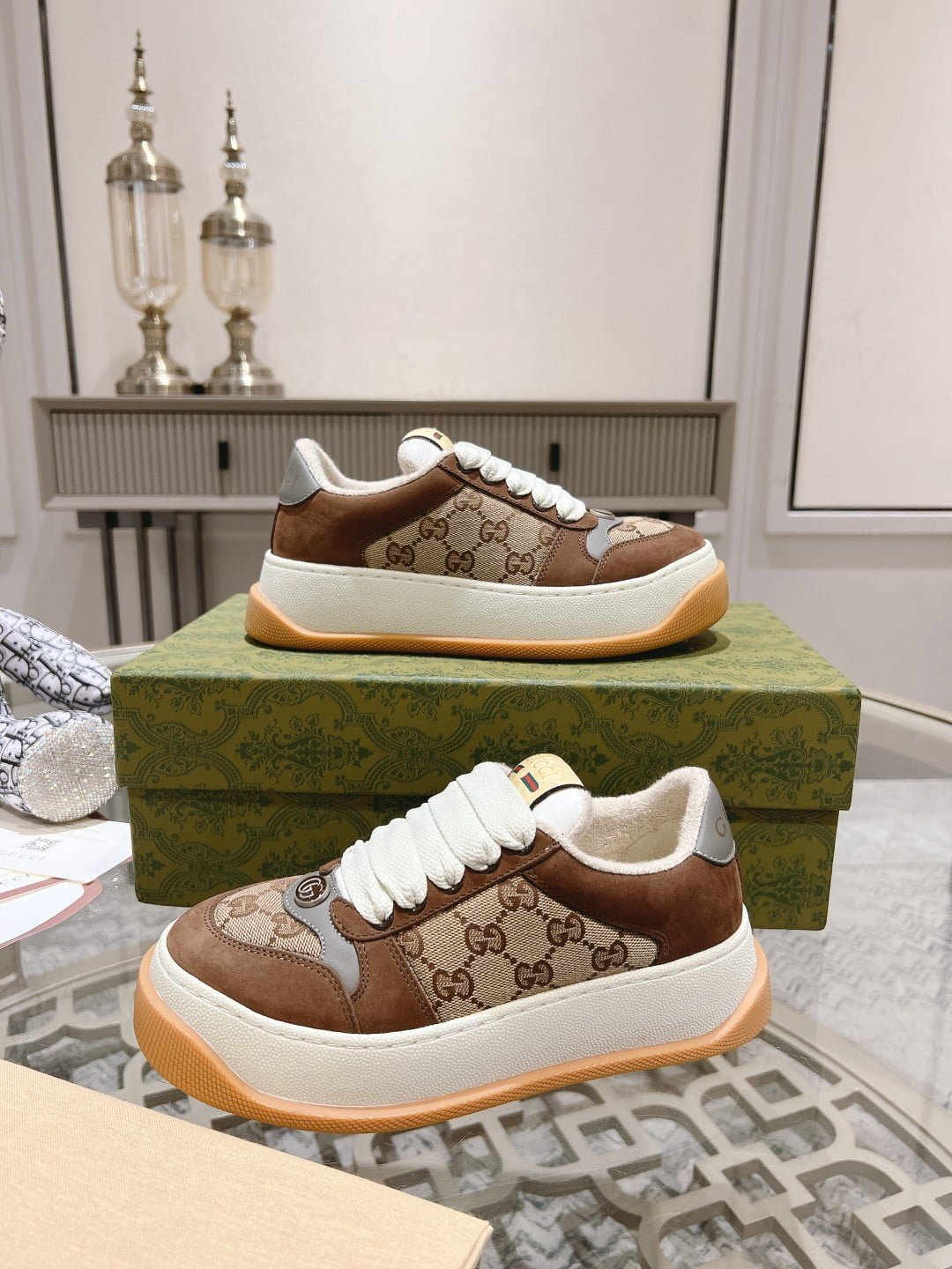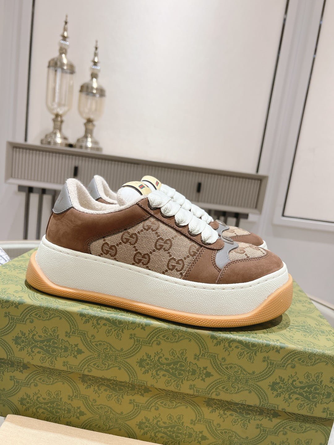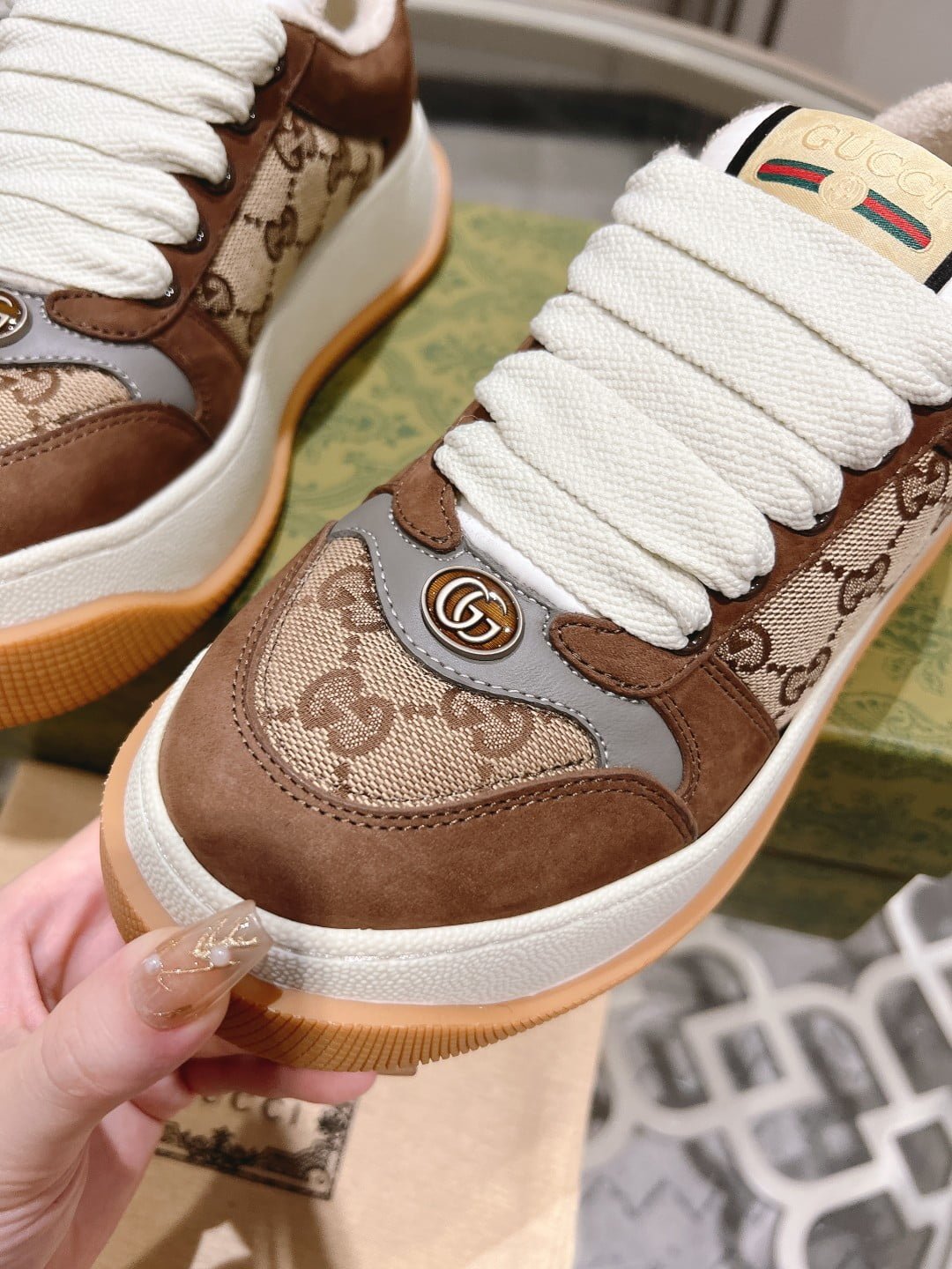 GUCCI new 6 cm tall dirty shoes. ❤️ top version chip upgrade version 2023 super fat GG screener series sports small dirty shoes: lovers 👫1:1 perfect version material. TPU outsole. cowhide feet. stamping. full package: female 35-40 male 38-45