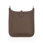 This Evelyne is in Etoupe clemence leather with gold hardware and has contrast stitching. pull tab top closure and a bleu indigo removable canvas and leather shoulder/crossbody strap.The interior is lined with natural leather.Collection: UOrigin: FranceCondition: Pristine; new or never wornAccompanied by: Hermes box. Hermes dustbag. shoulder strap. shoulder strap dustbagMeasurements: 6.75 width x 7 height x 2 depth; 23 strap drop