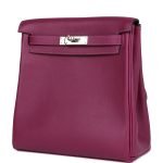 This Kelly Ado Backpack is in Anemone Evercolor leather with palladium hardware and has tonal stitching. two straps with front toggle closure. and two adjustable shoulder straps.The interior is lined in Anemone chevre and has an open pocket on the rear wall.Collection: ZOrigin: FranceCondition: Pristine. new or never worn (Plastic on hardware)Accompanied by: Hermes box. Hermes dustbag. carebook. ribbon and feltMeasurements: 8.5 width x 9 height x 4 depth