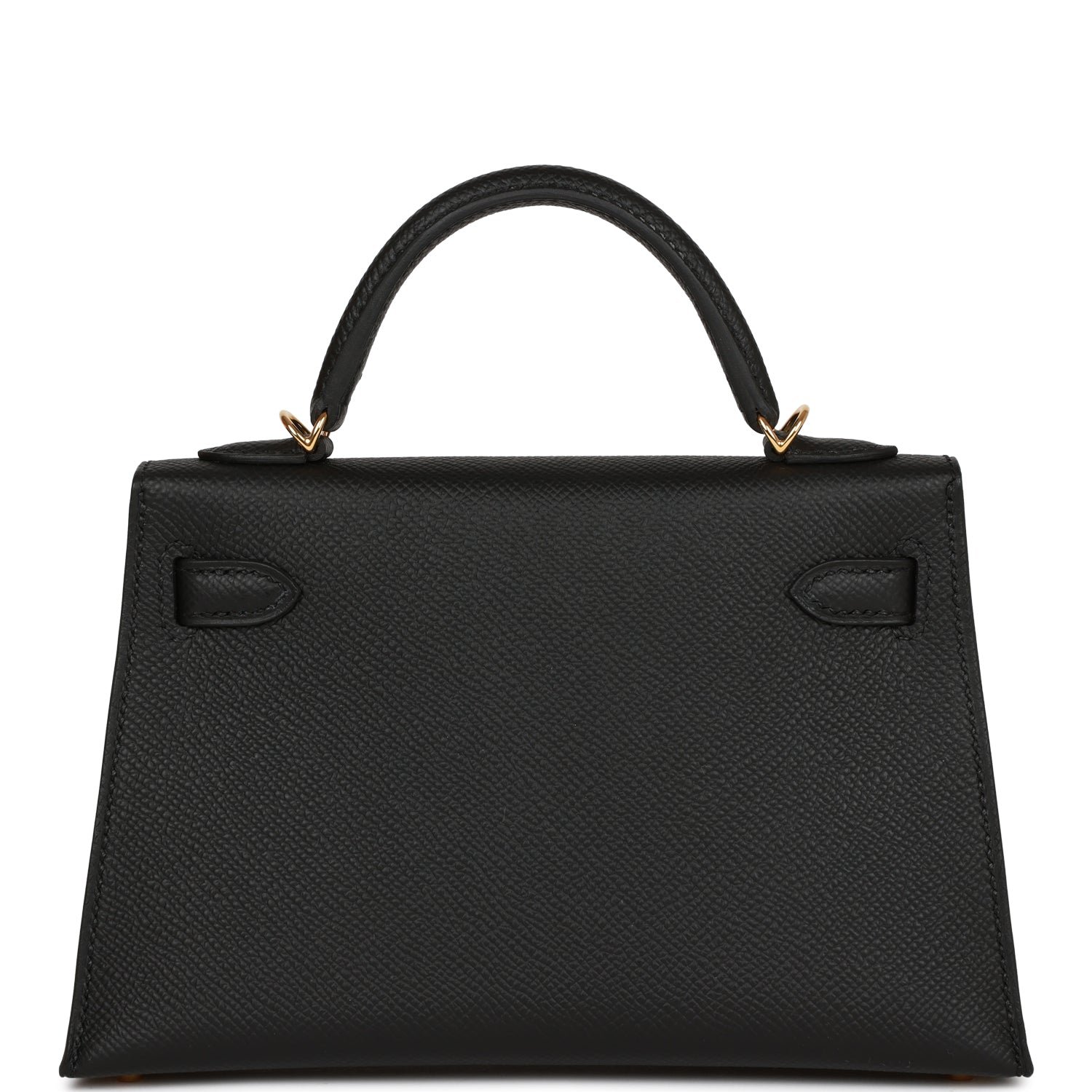This tiny Kelly. in the Sellier style. is in black epsom leather with gold hardware and has tonal stitching. two front straps with front toggle closure. single rolled handle and removable shoulder strap.The interior is lined with black leather and has one open pocket on the back wall.Collection: UOrigin: FranceCondition: Pristine; new or never worn (plastic on hardware)Accompanied by: Hermès box. Hermès dustbag. shoulder strap. shoulder strap dustbag. felt. carebook and ribbonMeasurements: 7.5 width x 4.5 height x 2.2 depth; 2.5 handle drop. 18.5 Shoulder Strap Drop