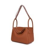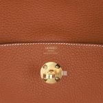 This Lindy is of Gold clemence with gold hardware and features contrast stitching. double zipper pulls. center Hermes twist lock closure. five palladium feet. and two top handles that are linked by a removable shoulder strap.The interior is lined with Gold leather and has two side interior pockets and two exterior pockets.Collection: UOrigin: FranceCondition: Pristine; new or never worn (plastic on hardware)Accompanied by: Hermes box. Hermes dustbag. carebook and rainhatMeasurements: 10 width x 7 height x 5.1 depth; drop: 4.5. strap 11 drop