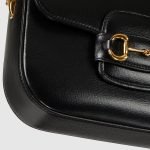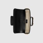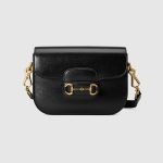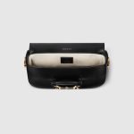 Petite versions of the Gucci Horsebit 1955 add a hybrid twist to the vintage inspired line. Enriched with two different shoulder straps, the black leather mini bag’s character transforms from understated elegance with a tonal leather strap to a strong logo feel thanks to a red and green Web option.