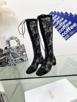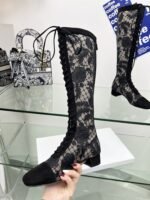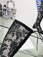 J’ADIOR Embroidery jacquard mesh boots Dior 2023 spring/summer latest color Jardin d ‘Hiver jacquard embroidery letter logo High heel bow matching color women’s shoes market top high-end version