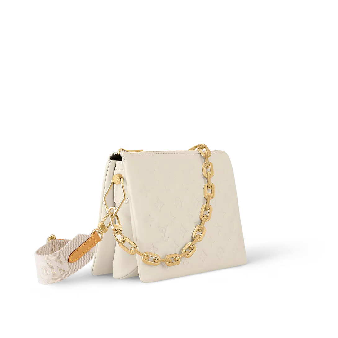 Get 45% off the Louis Vuitton M21262 Coussin PM from clutchestrends outlet (code: EXTRA45) with free worldwide shipping. One of the stars of the Spring-Summer 2021 show the Coussin PM handbag is made from Monogram-embossed puffy lambskin. It can be worn cross-body with the strap styled as a short-shoulder bag or comfortably tucked under the arm. The pillow-like Coussin bag brings style to the most simple look giving it an effortless fashion-forward allure.