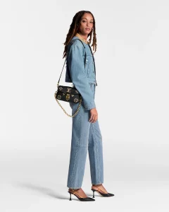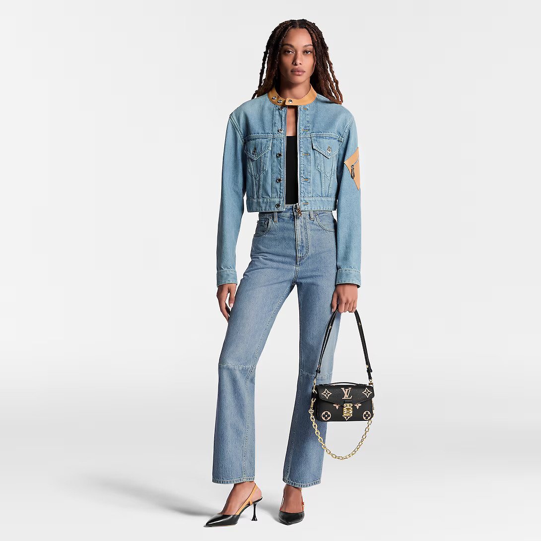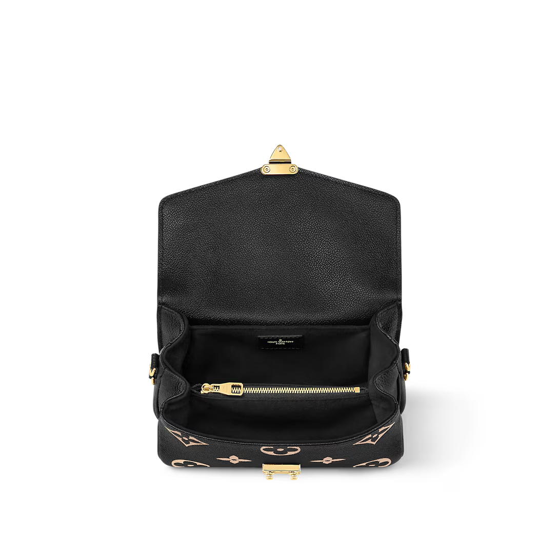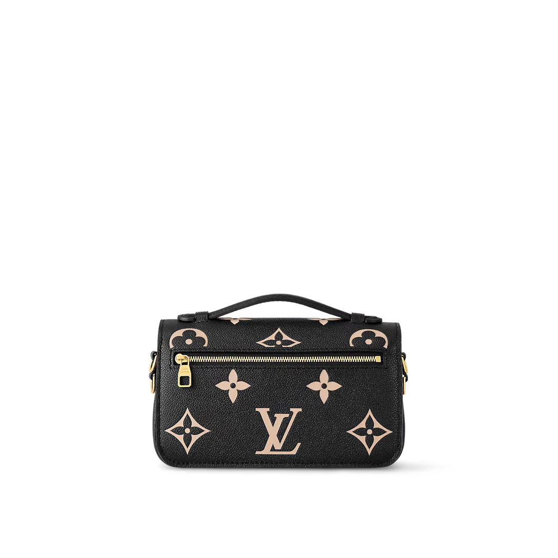 Crafted from embossed Monogram Empreinte leather the bicolor East-West edition of the Pochette Métis sports an oversized version of the signature motif. At once sophisticated and squarely on-trend this versatile day-to-evening bag can be worn on the shoulder with its detachable golden chain cross-body with the adjustable smart strap or carried by hand thanks to the chic top handle. Louis Vuitton M46596 Pochette Métis East West details: