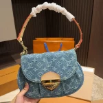 The Sunset handbag is made from Monogram Denim canvas and is adorned with the House’s tuck lock. Creating Monogram Denim is a multi-step process. First the Monogram pattern is woven into the Global Organic Textile Standard-certified cotton which is then bleached. Once assembled each bag is stonewashed to give it a unique aspect. The Sunset can also be styled for cross-body wear thanks to an extra extension strap included with the piece. 10.6 x 7.1 x 1.2 inches 27 x 18 x 3 cm(length x Height x Width)Denim BlueGOTS (Global Organic Textile Standard) Monogram Denim canvasNatural cowhide-leather trimGOTS (Global Organic Textile Standard) certified cotton liningGold-color hardwareFront lockInside flat pocketFront flat pocketStrap:Removable adjustableStrap drop: 9.1 inchesStrap drop max: 19.1 inches