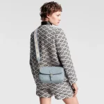 CHRISTIAN DIOR Grained Calfskin Saddle Bag Grey