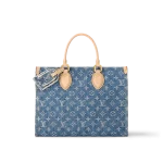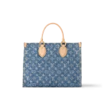 Get 45% off the Louis Vuitton M46871 OnTheGo MM from clutchestrends outlet (code: EXTRA45) with free worldwide shipping.  The OnTheGo MM Tote is crafted from new Monogram Denim canvas with natural cowhide leather for the top handle and handle bracket. Thanks to its square shape OnTheGo is large enough to accommodate a laptop. Its rolled leather top handles and two longer shoulder straps allow for a variety of carry options. Product Details 13.8 x 10.6 x 5.5 inches(length x height x width)Denim BlueGOTS (Global Organic Textile Standard) Monogram Denim CanvasNatural cowhide leather trimGOTS (Global Organic Textile Standard) certified cotton lininggold hardware accessorieshook buckleFlat interior zip pocketInternal double pocketsRemovable name tagHandle: double We allow returns within 30 days for a full refund and free exchange.Please read our Shipping Policy and Return & Exchange Policy for more details.