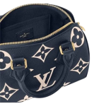Two-color Monogram Empreinte cowhide leather brings a luxurious aspect to the Speedy Bandoulière 20. The Monogram is first embossed into the navy-blue leather then the pattern is printed in cream on top of the embossing. Part of the Nautical Collection the Speedy features two top handles and a removable and adjustable strap for shoulder carry.