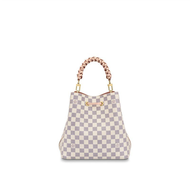 Limited quantities now exclusively available in the United States online only.For Summer 2020 the NéoNoé bucket bag in Damier Azur canvas features a braided-leather top handle. The hand-painted edge-dyeing of the top-handle leather is a gauge of the House’s commitment to craftsmanship. It can be hand-carried or worn over the shoulder and cross-body with its bicolor removable leather strap.Detailed Features10.24 x 10.24 x 6.89 inches / 26 x 26 x 17 cm(Length x Height x Width)•Damier Azur Coated Canvas•Natural cowhide-leather trim•Microfiber lining•Gold-color hardware•Braided top handle for hand carry•(drop: min. 31 cm/12.2 inches max. 54 cm/21.3 inches)•press studs for shoulder or cross-body carry•2 compartments•Zipped central flat pocket•Drawstring•Metal eyelets