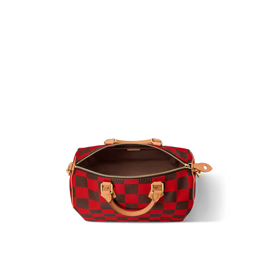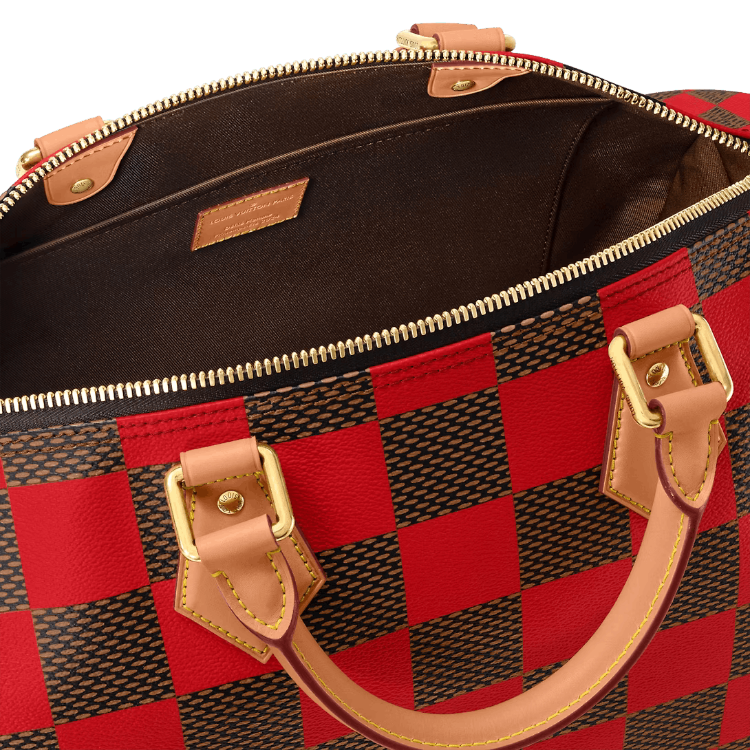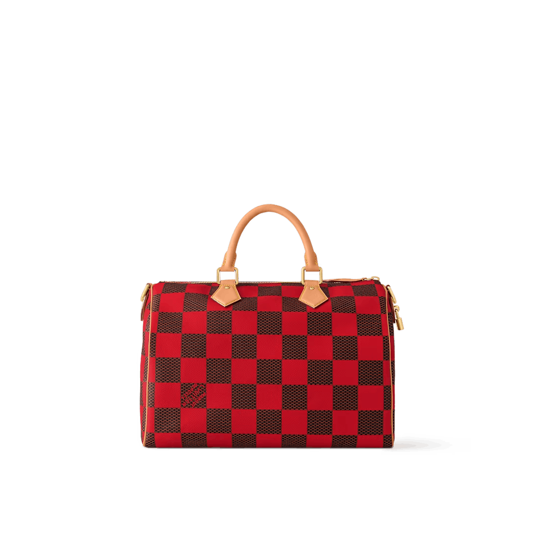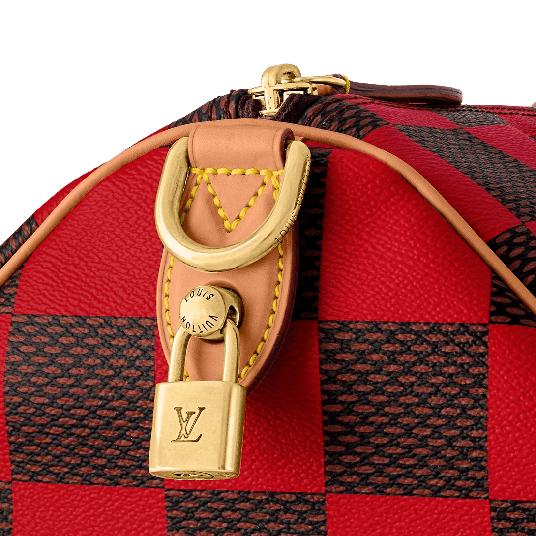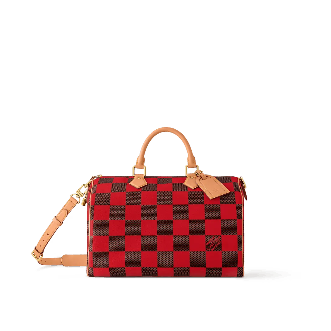 This Speedy 40 Bandoulière Damier Pop is made from Damier Pop canvas Creative Director Pharrell Williams’ new version of House’s Damier checkerboard. The colorful pattern is combined with natural cowhide leather on the top handles and shoulder strap and polished gold-color hardware including a padlock. This slightly smaller version of the Speedy is ideal for weekend getaways.