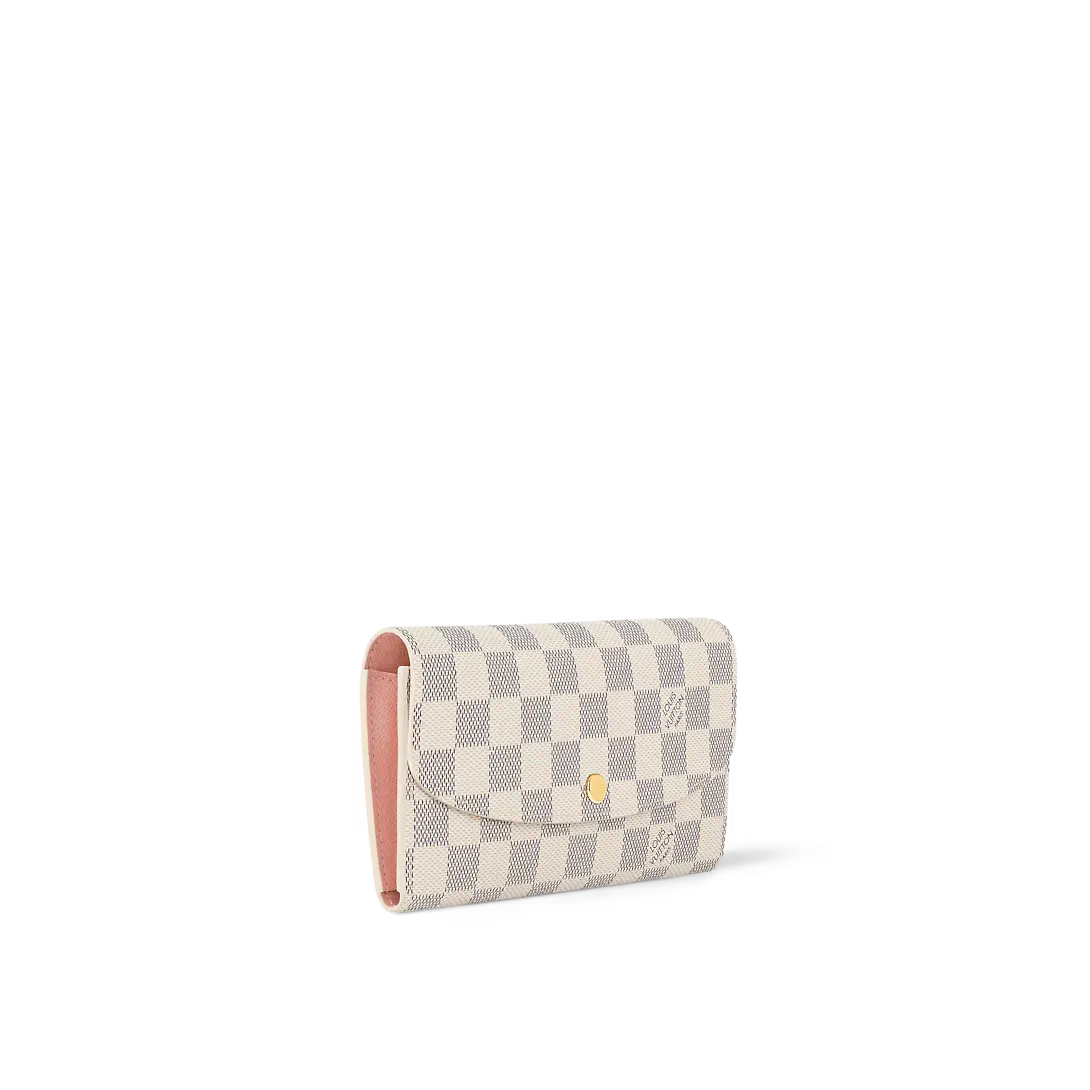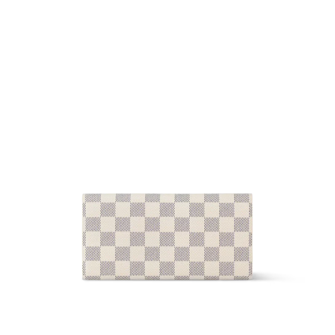 The functional and beautiful Emilie wallet is made of soft Damier Azur canvas and lined with grained calfskin. The envelope-style flap opens to a spacious interior with compartments a zipped coin pocket and a card slot. Its slim lines allow it to fit in a city bag or as a clutch. Louis Vuitton N41625 Emilie Wallet details:
